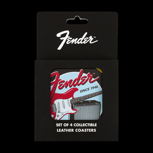 Set de 4 posavasos de cuero con gráficos de guitarras y amplificadores Fender de 1946